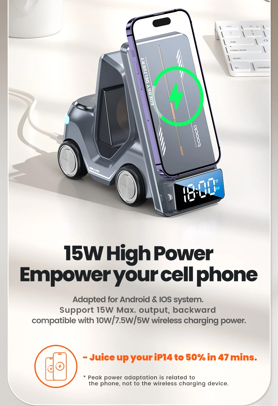 - Feature 2: 5-in-1 Multi functional Wireless Charger with Car Model Design